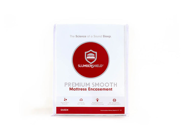 The SlumberShield® Premium Smooth Mattress Encasement is a zippable 6-sided enclosure with removable top that offers 360 degrees of BedBugBanisher® protection and 5-sided fluid-proof technology to protect the top and sides of your mattress from dirt, spills, stains and normal wear. The encasement is designed with Breathe-a-Barrier® technology to keep you sleeping comfortably while providing easy-to-clean protection for your mattress.